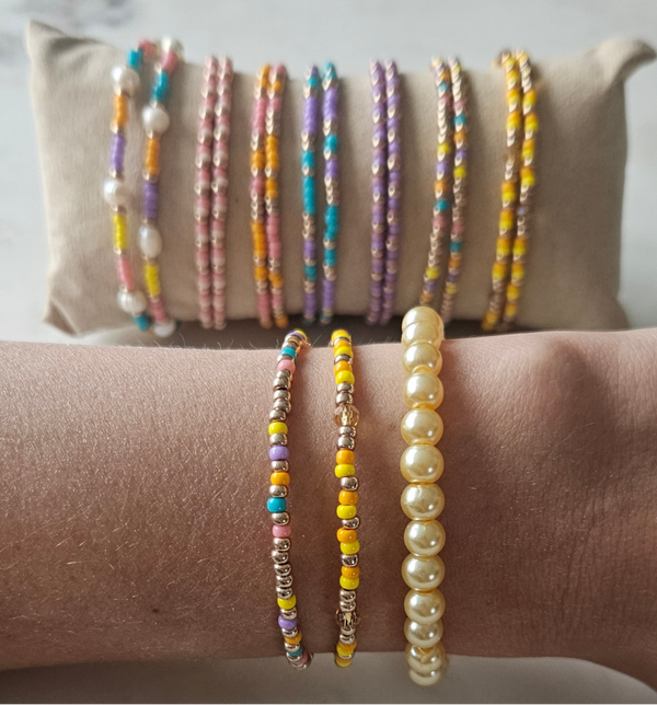 De nieuwe handgemaakte zomer collectie van Studio Defin is gemaakt met vrolijke kleurtjes, zoetwaterparels en afgewerkt met als basis rose gouden kraaltjes. Mix en Match alle armbandjes met elkaar want dezelfde kleurtjes komen steeds weer terug.