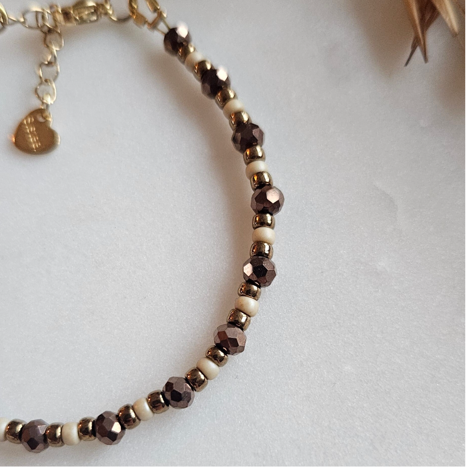 - Handgemaakte kralen armband met verschillende kleuren rocailles van Miyuki en bronze facetkralen