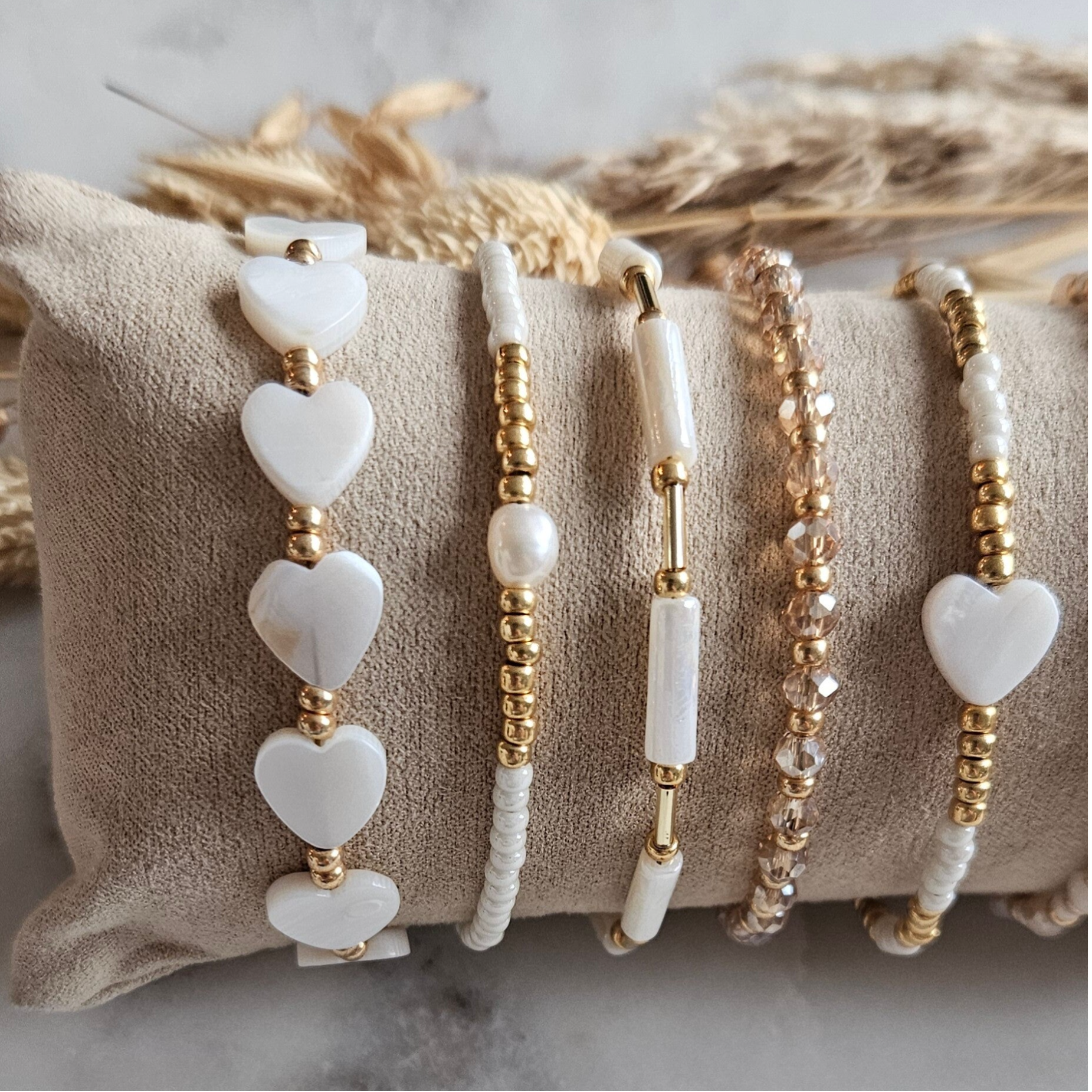 De armbanden uit deze collectie zijn gemaakt van kwalitatief hoogwaardige rocaille glaskralen van het merk 'Miyuki'. Alle kraaltjes zijn van gelijke vorm en kleur. De hoge kwaliteit van deze kralen zorgt ervoor dat alle sieraden lang mee kunnen.