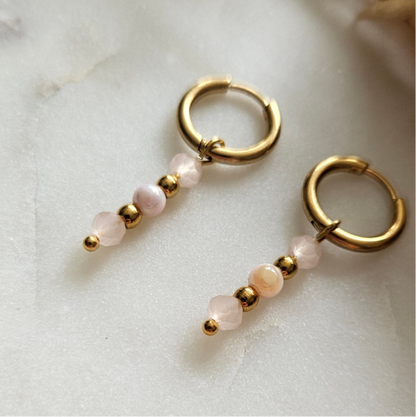 Alle oorbellen van Studio Defin worden gemaakt met dezelfde soort kralen als die worden gebruikt in de armbanden en kettingen. Zo kun je alles mooi mixen en matchen met elkaar.